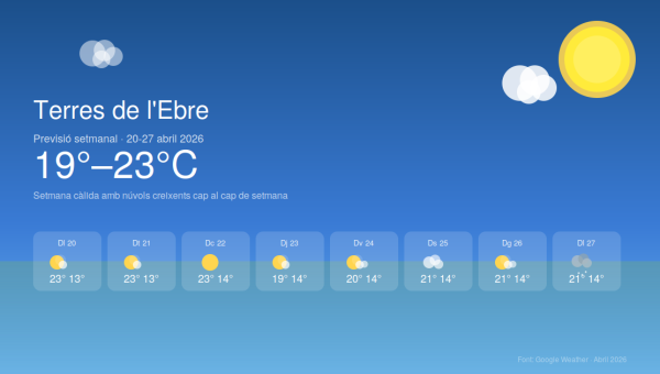 Aquest divendres 17 d’abril la jornada començarà amb bon aspecte a les Terres de l’Ebre, amb un cel serè que convida a…
